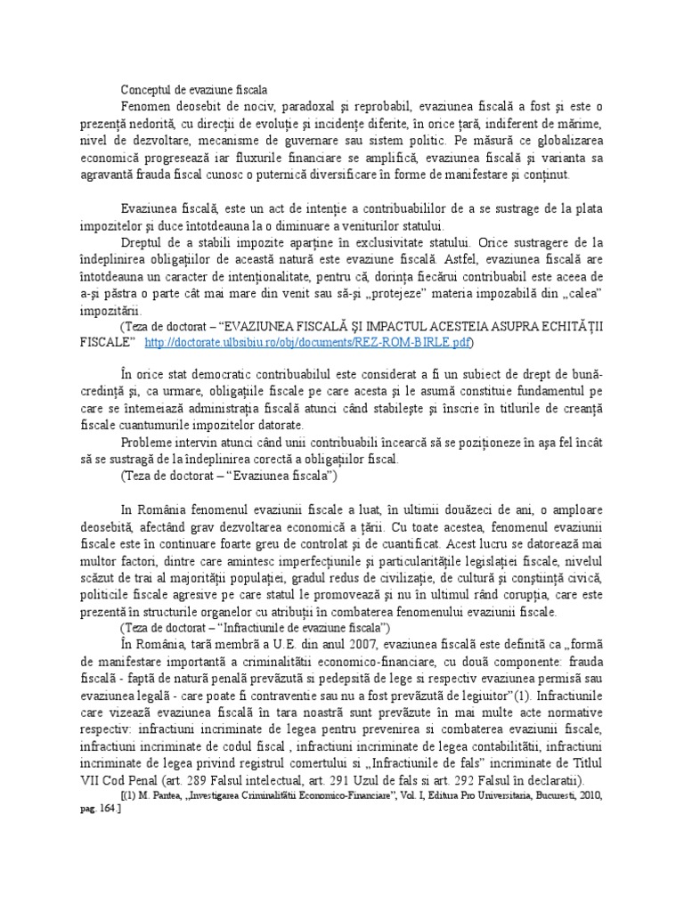 Evaziunea fiscala conform legii nr 87 1994 republicata cu modificarile ulterioare evaziunea fiscala reprezinta sustragerea prin orice mijloace de la impunerea sau de la plata impozitelor taxelor contributiilor si a altor sume datorate bugetului de stat bugetelor locale bugetului asigurarilor sociale de stat si bugetelor fondurilor speciale de catre persoanele fizice si persoanele. Infractiune continua intre 2003 2012. Conform acestor legi refuzul de a prezenta documentele în ceea ce privește contabilitatea se pedepsește cu închisoare de la un an la 6 ani. Infractiune continuata intre 2004 2014.