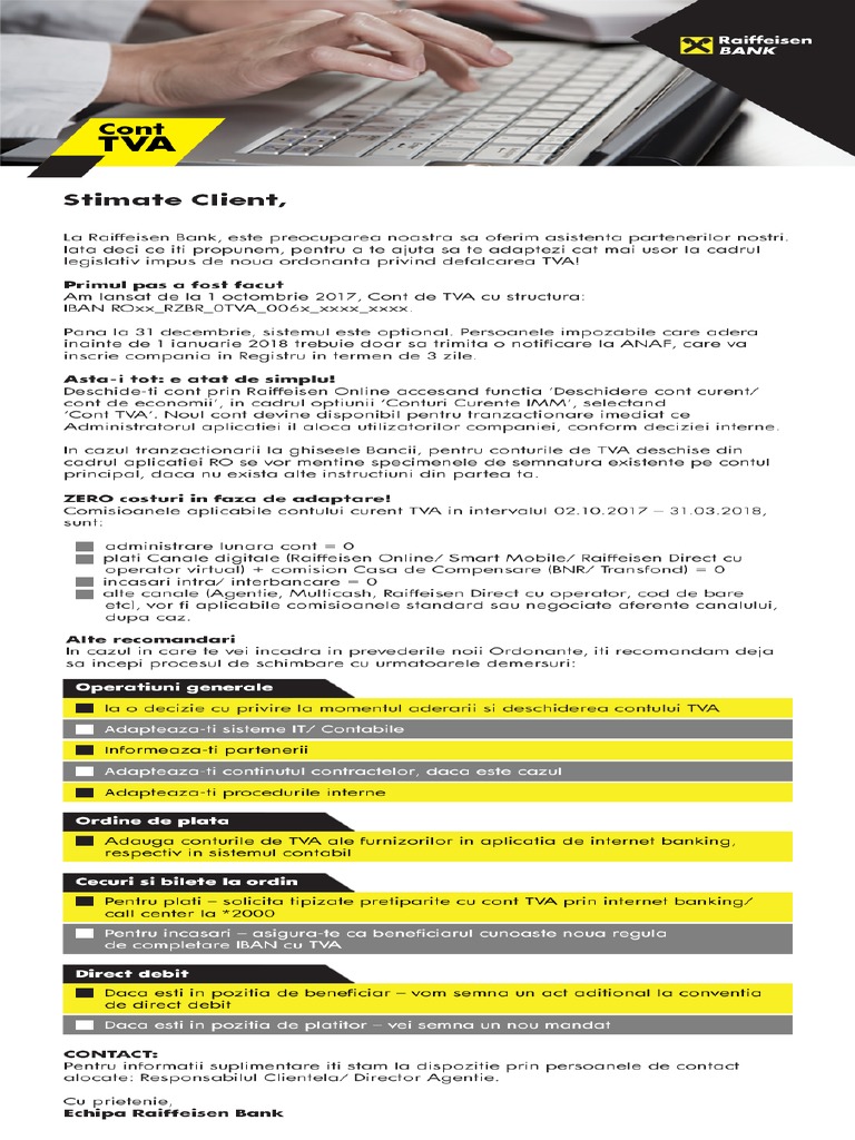 Cont plata tva 2018. Dintr un cont tva nu se poate retrage numerar. Noua actualizare a ordonantei facuta la inceputul anului 2018 permite corectarea in termen de 30 de zile a platii facute in mod eronat in alt cont decat in cel dedicat tva in loc de 7 zile. Registrul persoanelor care aplică plata defalcată a tva. Persoanele impozabile înregistrate în scopuri de tva vor avea obligația de la 1 ianuarie 2018 de a deține și gestiona un cont de tva pentru încasarea și plata tva aferente operațiunilor taxabile achiziții de bunuri servicii livrări de bunuri prestări servicii.