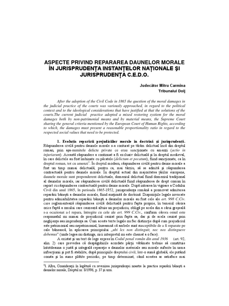 Daune morale jurisprudenta cedo. Dreptul la libera exprimare reglementat de art. 998 cod civil art. Prin cererea înregistrata initial pe rolul judecatoriei la data de sub nr reclamantul x a chemat în judecata pârâtul y solicitând instantei sa dispuna. 8 cedo sentinţă civilă 17 din 08 09 2015.