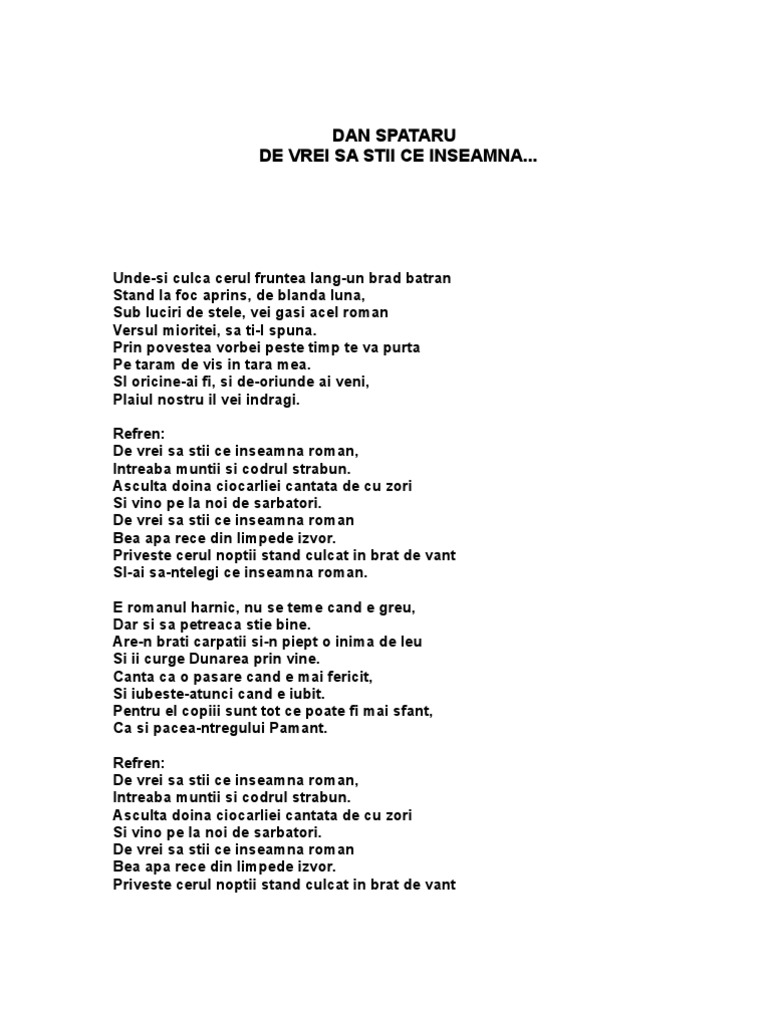 De vrei să ştii ce înseamnă român întreabă munţii şi codrul străbun. Dan spataru de vrei sa stii ce inseamna roman cornel fugaru dvd trofeul creatie mamaia 86 duration. Priveste cerul noptii stand culcat in brat de vant si ai sa ntelegi ce inseamna roman.