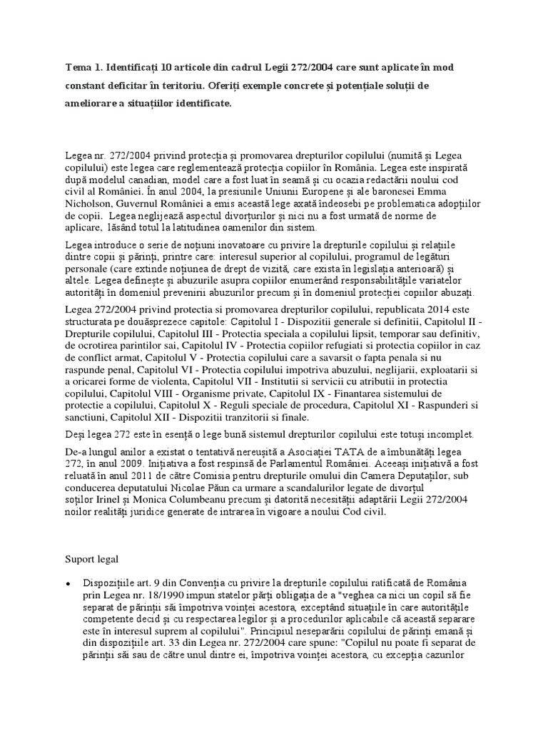 64 din legea nr. 409 din 10. 272 2004 sulylqg surwhf ld úl surpryduhd guhswxuloru frsloxoxl d irvw sxeolfdwvq0rqlwruxo2il fldodo5rpkqlhl 3duwhd qu glq lxqlh úldpdl irvwprglilfdwsulq legea nr. Legea 272 2004 actualizata 2016 privind protectia si promovarea drepturilor copilului.