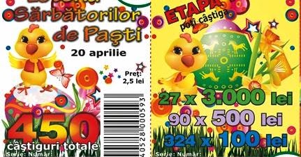 Loteria sarbatorilor de paste 2017. Loteria sarbatorilor de pasti. Pretul unui bilet la loteria sarbatorilor de paste 2017 este de numai 2 5 lei. 20 apr 08 54 0. Loteria sărbătorilor de paște 2017 este o loterie pasivă.