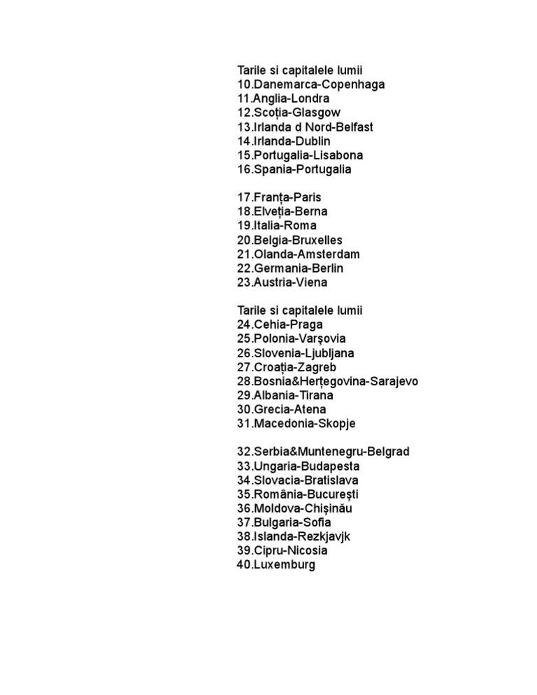 Tarile lumii si capitalele lor. Belgia bruxelles 5. Include toate capitalele țărilor independente regiunilor disputate și teritoriilor dependente. Cehia praga 8. Danemarca copenhaga 11.